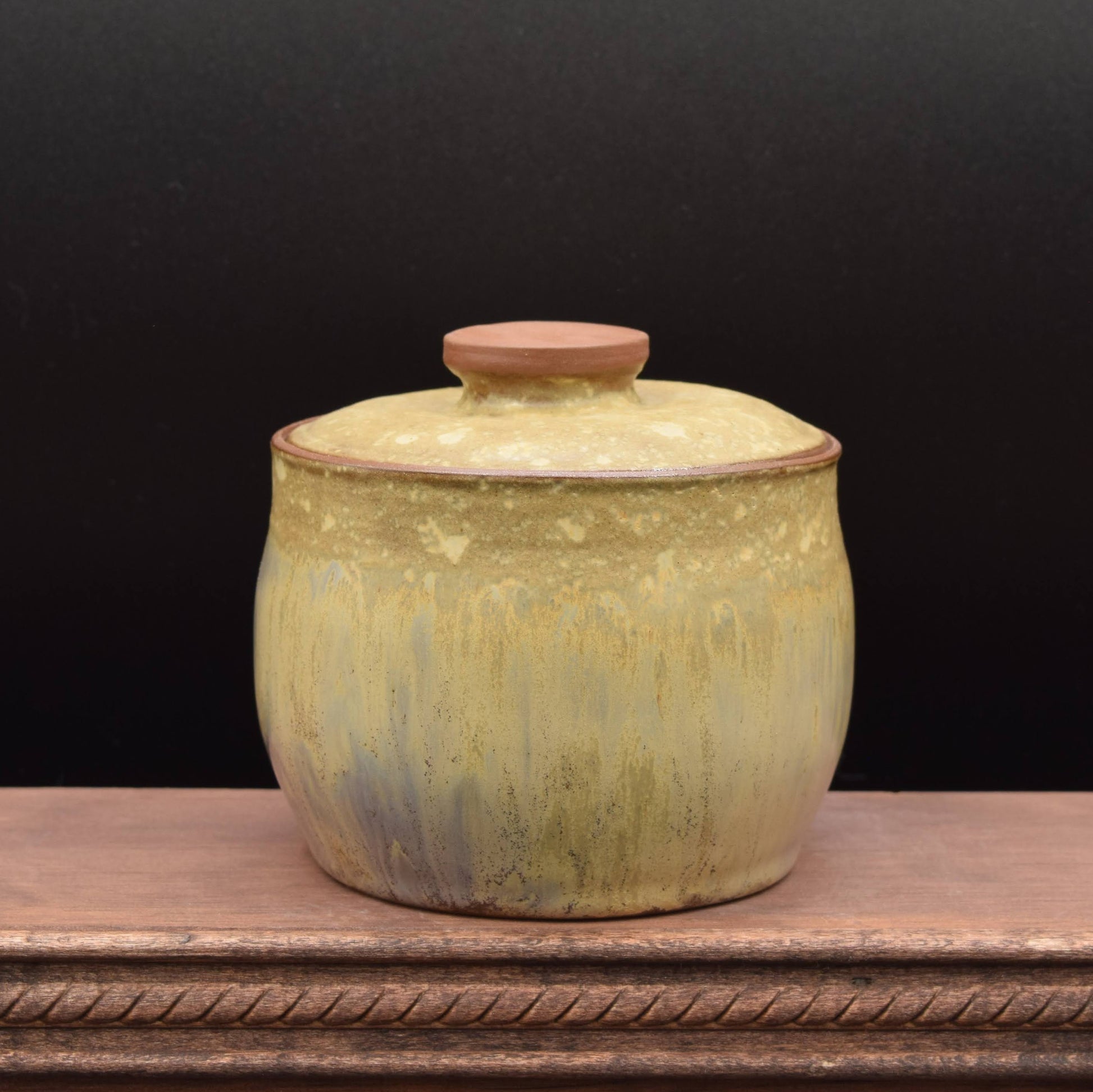 This jar is perfect for sugar on the table or salt in the kitchen. The lid is easy to pickup and it holds a decent amount, all while being beautiful.